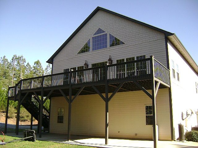 Custom built tri-level home in gated Hearthstone Ridge. Subd. Over 3200 heated square feet of living space. 4 Bedroom, 3.5 Baths with Hardie Board siding. Lower level has triple garage, 2 Bedrooms, 1 Bath and Living Room. Second level features Master Suite with huge bathroom containing jacuzzi tub, ceramic lined shower and walk-in closet. Additionally there is another Bedroom and 1.5 Baths. Great Room has soaring cathedral ceilings, hardwood floors, fireplace with gas logs, recessed lighting and lots of large windows to let in extra light. Luxury kitchen has custom cherry cabinets, granite counters, ceramic bead backsplashes and stainless appliances. The third level has a large room with hardwood flooring and recessed lighting ideal for a rec room or family room. 12 foot by 40 foot deck and covered patio. Also included is a 1300 square foot guest house featuring 2 Bedrooms, 2 Baths, Living Room, Kitchen and Dining area. Well for main home is shared with guest house.