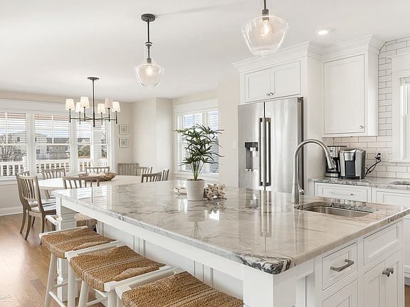 Beautiful Avalon 7 bedroom, 6 bath & 1 half bath Tom Welsh built home with hardwood floors, elevator and heated pool located close to the Beach and the center of town! Park the car and walk to the beach, dining, shopping, ice cream, mini golf, etc... The 1st. floor has a large front porch and offers 3 bedrooms (one of which is a custom-built bunk room), 2 baths, laundry room and large entertainment room with wet bar and beverage fridge leading out to the pool area. The 14’ x 22’ pool area has ample room for lounge chairs, mature trees around the perimeter for privacy and grilling area. The 2nd floor offers the kitchen, living and formal dining area with cathedral ceiling with over-sized slider leading out to the large front deck. The kitchen features stainless steel appliances, custom cabinets and quartzite countertops. The 2nd. Floor has a massive pantry area which also has an extra fridge for more storage of food and drinks. Continuing on the 2nd floor there are 2 more beds with on-suite baths and a half bath. The 3rd. floor has a bedroom and bath off the front of the home with its own deck, another washer and dryer and the master suite. The master suite consists of a large bedroom, large walk-in closet, private exterior deck, master bath with double bowl vanity and walk-in shower. The exterior blue Hardi Plank siding is accented by the cedar ceiling above the decks. This home has tremendous rental income and easily books from Memorial Day through the end of September and beyond. Peak rental week rental rate is $18,250.00. Rental potential over $240,000