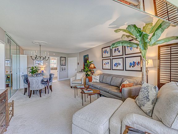 All ages welcome in this condo overlooking the golf course and lagoon. Atlantis is a gated community centrally located to I-95, shopping and dining. Building has elevator. *** UNIT HAS FULL HURRICANE PROTECTION - IMPACT WINDOWS AND ACCORDION SHUTTER FOR SLIDERS *** Enter and be wowed by the views of the lush golf course and water. The 2/2 unit shows like a model! All has been renovated, plus hurricane impact windows. White Shaker cabinets in kitchen and baths. Primary bedroom suite is spacious at 17 x 14 with ensuite bath and walk-in closet. The guest bedroom has a large closet. (FLOOR PLAN ATTACHED) NO MANDATORY MEMBERSHIP. Heated community pool and BBQ's. Atlantis is a walking-friendly community.