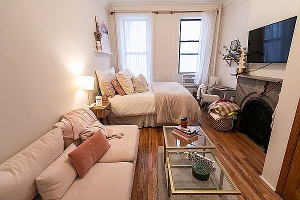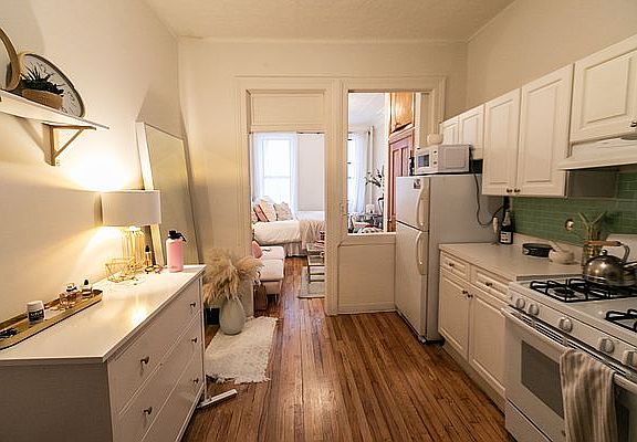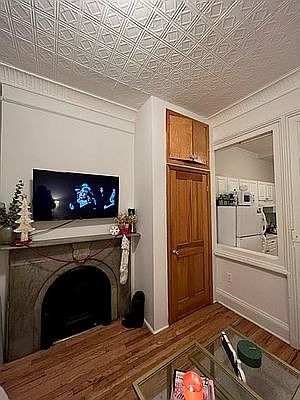 Bright 2 Room studio with, Exposed Brick, Decorative Fireplace, Hardwood Floors and High Ceilings. Heat & Hot Water Included and Pets are allowed. The open kitchen has new cabinets. This is Close to Thompkins Square Park. Bus stops in front of building.