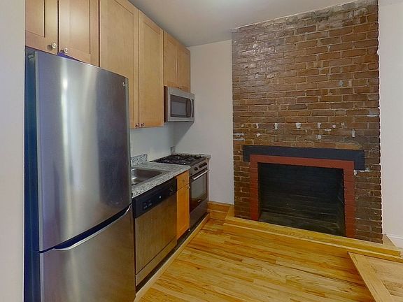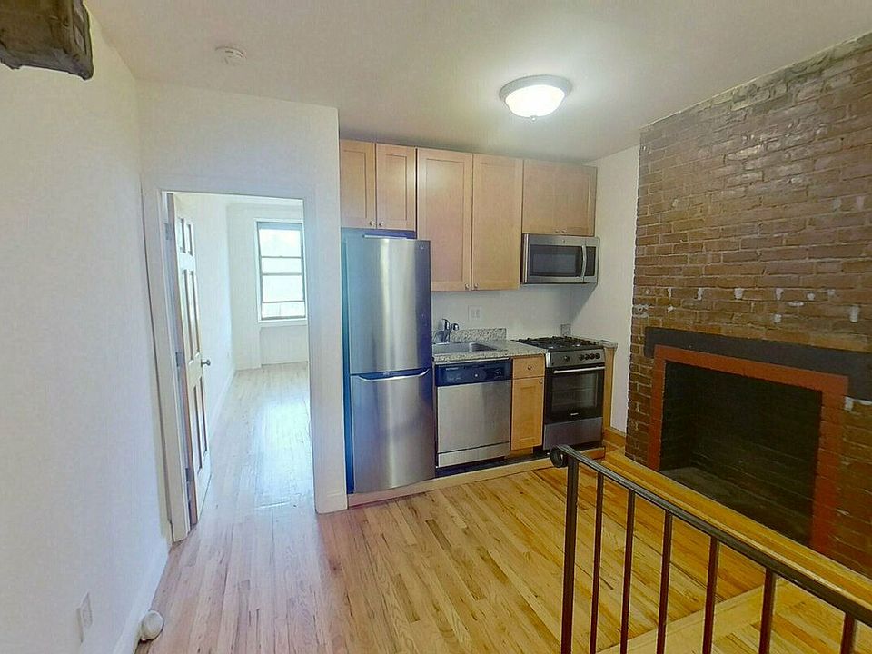 Rent Stabilized gut-renovated 1BR with decorative fireplace, exposed brick, great light, high ceilings and hardwood floors. The kitchen has stainless steel appliances including microwave and dishwasher, with maple cabinets and granite counter tops.. A must see & NO FEE!