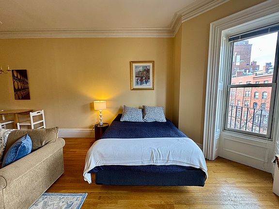 *FULLY FURNISHED* AVAILABLE SEPTEMBER 1 (9/1) FOR 12 MONTH LEASE: Sunny Beacon Street gem! This oversized fully furnished studio in the heart of Back Bay offers the conveniences and comforts of home, as well as classic Boston brownstone character. The open floor plan is large enough to accommodate a spacious living area, a study/work-from-home nook, a queen sized bed and 2 separate dining/lounging areas -- one of which offers lovely views from the front-facing bay window. In the rear of the unit, find the efficient kitchen (stocked with dining essentials), a XL walk-in storage closet with plenty of hanging space and the full bathroom with tub. Additional features: decorative mantle and mouldings, easily accessible portable AC in-unit, high ceilings, shared coin-op laundry in building, TV, linens and more. Enjoy all that the city has to offer within moments: .5mi from the Charles River Esplanade, Boston Common & Public Garden, Commonwealth Avenue Mall, Newbury Street, Boylston Street, Copley Square and T Station and endless local restaurants, shops, cafes and nightlife destinations. Within ~1 mile: Prudential Center, Mass Ave / the 1-Bus to Cambridge, MIT & Harvard Square, Hynes Convention Center, Berkelee College of Music, South End and Restaurant Row, Downtown, Mass General Hospital and so much more. HEAT INCLUDED! Tenant pays electricity + cable wifi.