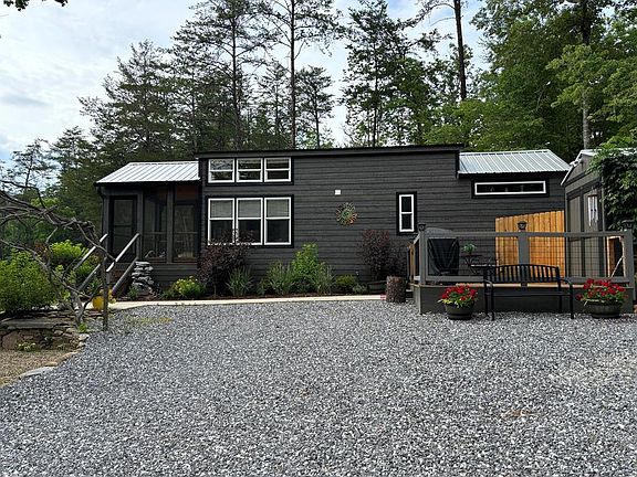 Adorable tiny home in the sought after community of Bear Pen Cove. This 1/1 with cathedral ceilings has been meticulously maintained. Beautiful electric fireplace adds ambience to the living room. Recent upgrades include, new washer and dryer, quartz kitchen countertops, tankless hot water heater, water softener, meticulous landscaping and a fenced in area for your furry loved ones. 10 x 12 screened in porch for additional living space. Choose from several outdoor areas to lounge with that morning coffee or evening drink while overlooking the community space. 10 x 12 powered storage building to store your extra belongings. Two mini splits ensure the home is heated and cooled. Home also offers a 30 AMP hookup for an RV. Come enjoy country living while watching the deer that visit the field in the evenings. Short term rentals are allowed. Community water, private septic. HOA covers common area maintenance, water and road maintenance. Seller currently has Frontier for internet. $2,000 NC transfer tax from the buyers will be collected at closing.
