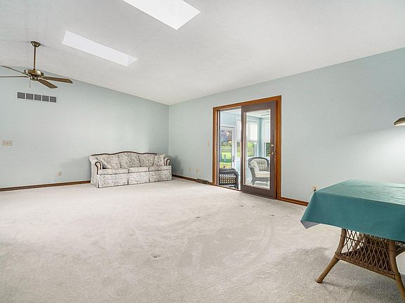 A charming 3-bedroom, 2-bath condo/home offering comfort, convenience, and maintenance-free living in Bremen’s desirable Grandview South community! Enjoy a care-free lifestyle with lawn care, snow removal, and exterior maintenance all included with low condo fees. This beautifully kept home features a bright, open-concept floor plan with vaulted ceilings, skylights, and newer carpet throughout. The spacious living and dining areas flow seamlessly into the kitchen, making entertaining easy. A stunning finished enclosed sunroom offers year-round enjoyment and direct access to a private back patio—perfect for relaxing or hosting guests. The primary suite includes a walk-in closet, an additional double closet, and a newly updated tiled walk-in shower. Convenient main-level laundry and two additional bedrooms provide plenty of flexibility for guests or a home office. The partially finished basement expands your living space with a cozy gas fireplace heater and room for recreation or hobbies. Other updates include a newer HVAC system (less than one year old) and a modern electrical panel, giving you peace of mind for years to come. The extra-large 2-car garage adds even more storage and convenience.