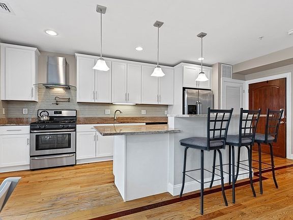- Kit Dscrp: Flooring - Hardwood, Countertops - Stone/Granite/Solid, Stainless Steel Appliances, Window(s) - Bay/Bow/Box, Kitchen Island, Lighting - Pendant, Lighting - Overhead