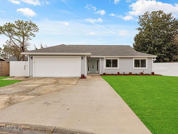 Tastefully renovated cul-de-sac home in a fantastic location, close to beaches, schools, Abess Park, Mayo Clinic and St. John's Town Center. This gorgeous home has no HOA and comes with 3 beds, 2 baths and has exquisite features including bright and spacious split bedroom floor plan, Large 2nd living space/den or office with sliding glass doors and large master with walk-in closet. Custom kitchen with solid wood cabinets, quartz counters and stainless-steel appliances. Brand NEW Roof and Water Heater in 2023, AC from 2013, New luxury vinyl plank flooring throughout, Updated bathrooms, Freshly painted interior and exterior, New electrical and plumbing fixtures throughout. Large fully fenced backyard that is perfect for entertaining. This home is a must see!