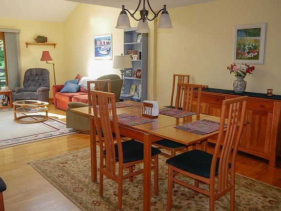 This beautifully maintained 2 bedroom, 1 1/2 bath end unit townhouse condominium is located in a peaceful private setting in Briar Knoll Condominiums, a 36 unit association. This updated unit features an open concept living/dining area with skylights, Corian countertops in the kitchen, central air, a large walk-in shower and a family room in the walk out basement. Relax on the deck under the retractable awning and enjoy the lush landscape. There is plenty of storage in the attached storage shed and extra storage room in the basement. Low monthly condo association fees, natural gas and town water and sewer. Conveniently located.