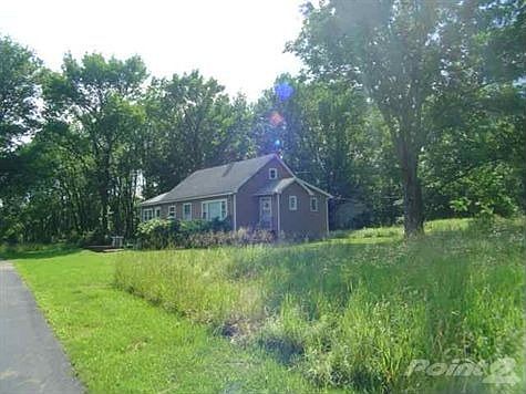 Private setting for this vintage ranch on over 8 acres. Needs some work, but worth the effort! Patio area at front entry for enjoying the outdoors. Enclosed porch doubles as laundry room, kitchen opens to dining area, living room, den, 2 bedrooms and 2 baths. Level, cleared yard around house, balance wooded. Includes old barn by the road, which is used as a garage. Tons of possibities here! Call today!