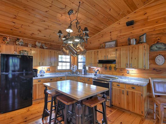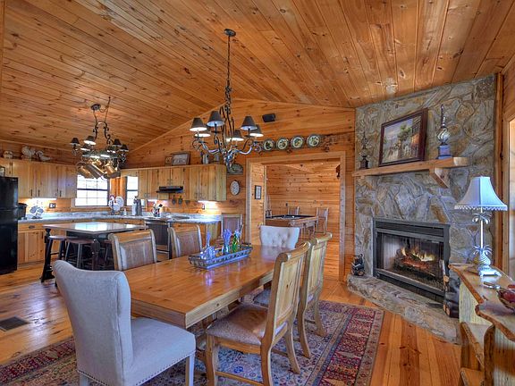 1-Level Living TURN KEY... Roomy & Comfortable Rustic 3/2 Cherry Lake Cabin with Year-Round View. This log cabin is immaculate and well-cared for. Not your typical 3/2 cabin. Loads of room for all your family & friends. Decks & porches & spa to enjoy the stunning views. Large modern kitchen with very roomy dining area, fireplace, & vaulted ceiling. The vaulted ceiling great room is a wonderful and cozy gathering room and includes a beautiful inviting fireplace. Over-sized master bedroom and large bath. You, family and friends won't feel cramped in this one! Deck steps lead down to more sitting areas & spa and entrance to 1000+ SF unfinished basement - rare to find plenty of storage room like this. When you walk in you will feel right at home and will not want to leave. Awesome family retreat or income-producing rental. MUST SEE as it will not last long.