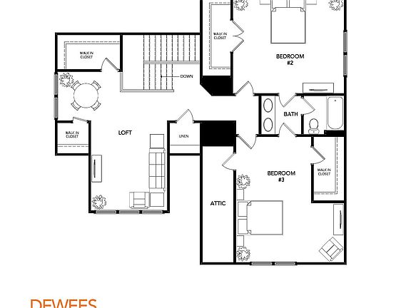 The Dewees is a perfect plan if you're looking for a main level master and a nice separation from the guest's suites.. As you enter from the large hallway, you'll see the formal dining room that is connected to the butler's pantry, allowing for everything you need right at your fingertips while entertaining. The master suite, on the first floor, offers an optional tray ceiling, dual raised vanities, 5 ft tiled shower, and large walk-in closet. The kitchen is completely open to the great room and is equipped with stainless steel appliances, oversized center island, and additional seating, for everyday casual dining. On the second floor, bedroom 2 and 3 have access to the Jack and Jill style bathroom, with dual vanities. The loft area is perfect for family gatherings or can be easily converted into bedroom 4 with a full private bath and walk-in closet.