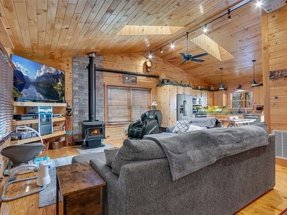 (Update: The Owner has received multiple offers, calling for Highest and best offers to be delivered by 1130pm Sunday, 2/26/23. Owner will respond to best offer Monday morning.) This warmly inviting log home has lots of hidden features and is sold mostly furnished, so it is ready for its new owners. The living room has plenty of natural light offered by the skylights, with a freestanding wood stove for the chilly winter nights. In the living room there is a remote-control retractable projector screen with an included projector, and a built-in popcorn machine for family movie nights, or game nights. The open floor plan flows into the remodeled kitchen with new countertops and appliances. You can step out onto the back deck to take in the mountain views and enjoy your morning coffee. The laundry room is conveniently connected to the kitchen. The furnished Master bedroom is located on the main floor, also on the main floor you will find another bedroom, currently being used as an office. One of the most convenient features is the elevator. Downstairs you will find a large Gameroom with a full-size custom built cedar pool table (included), a bedroom, bathroom, and an exercise room. There is also an area that could be turned into a kitchen, so the entire lower floor could be its own complete living area. Also, the lower level features the superior wall system, so you will never have to worry about moisture. In the mechanical room, you will find a whole house triple filtration system, and the home is wired to the portable generator in case of power failures. Next, you can step outside and enjoy the built-in grills, and the new cabanas, or sit around the fire pit. There is also a 2-car garage with an upstairs his & her workshop or for extra storage. There is room beside the garage for an RV with electrical hookup. This charming and well-built log cabin is feature packed to ensure wonderful memories of good times in the mountains. Make this your happily-ever-after home!