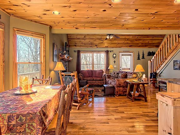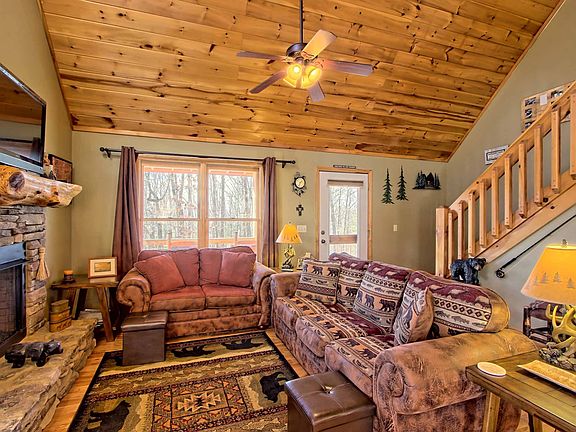 Come check out this well maintained 3 bedroom 3 bath home. Each level is complete with a full bedroom and bath. Upstairs includeds a great oversized loft. Currently used as the game area but be used as a extra sleeping area as well. This great subdivision has the privacy but also gives you the comfort of knowing other cabins are around. All underground utilities and paved roads throughout the subdivision. Only about a 1 miles of gravel to get to the subdivision. The serene setting makes this a great private mountain getaway home, vacation rental or full time home. Located close to Downtown Blue Ridge, Toccoa River, Lake Blue Ridge, Hiking and biking trails! A lot of furnishings remain, list of items not remaining will be disclosed. Call now for an appointment!