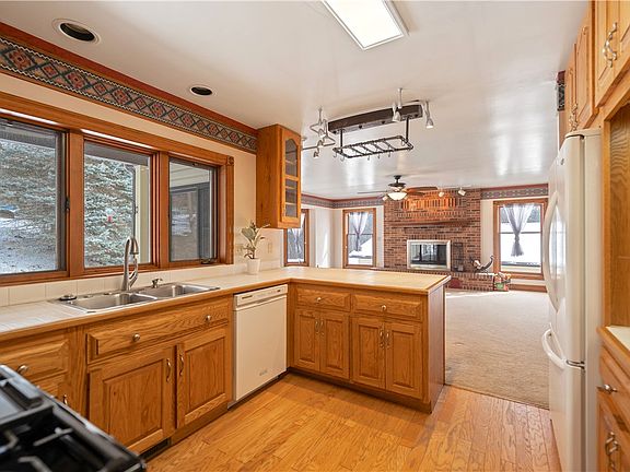Beautiful, custom built solid home on a flat 1 acre lot! The main level features an open kitchen and breakfast nook that looks out onto the covered patio. Spacious dining room features gleaming hardwood floors and oversized windows. Living room with brick woodburning fireplace. First floor bedroom could be used as an office