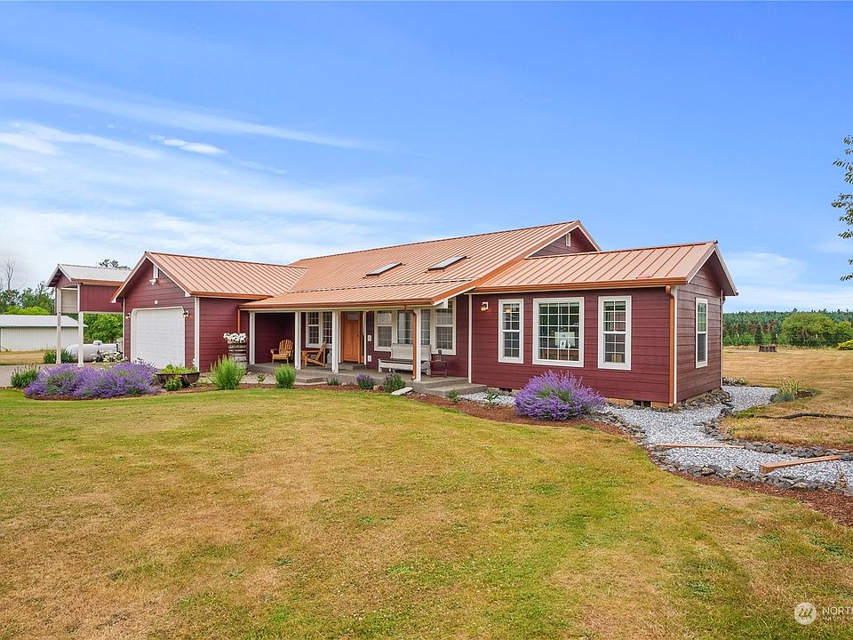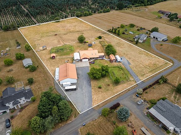 This may be the property you have been searching for. 5+ acres, all useable with attractive ranch-style house and huge 40' X 60' shop building. House sports an attractive metal roof, cement plank siding, and a large composite deck - enjoy the low maintenance. The almost 2,200 sq ft home has 3 bedrooms, 2 baths, granite countertops, stainless appliances, great room, open floor plan with large office/media room. Heat pump/AC, vaulted ceilings, skylights, and auto-start whole-generator. Add a few additional outbuildings, 2 large-fenced garden areas, fruit trees, chicken house, covered RV parking with full hookups, fencing for horses or other livestock, high-output well.... What an amazing property at a great price. Come look today!!