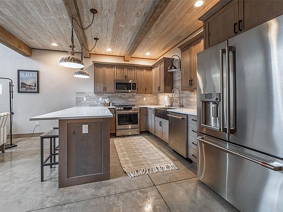 Welcome to this new, modern, one of a kind construction within minutes of the West entrance to Glacier National Park, approved for short-term rentals (VRBO/AirBNB). This modern/rustic ground-floor unit features 2 bedrooms, 2 bathrooms, a luxury kitchen, a grand hand-built wood spiral staircase sitting within 1,337 Sq. Ft. of living space. Perfect layout for entertaining inside and out, guests and owners alike will enjoy the mountain views, community space with chairs and firepits, covered decks and a patio with a hot tub hookup. Units are equipped with high efficiency radiant floor heat and high efficiency A/C Units. The wood inside and out of these units come from local timbers sourced from the surrounding forests. Longtime local builders developed this project and have dedicated 3 years working through approvals to make these sought after rentals or personal dwellings a reality. These are the first units available. 2023-09-27