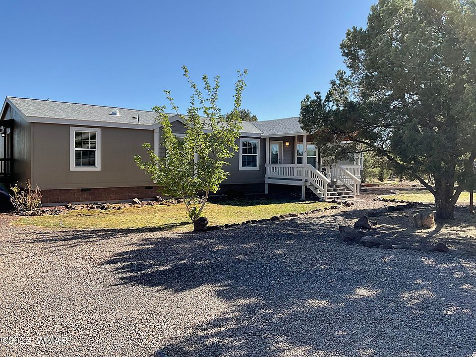 Are you ready to be in the country yet close to town? If so, this is the home for you. Sitting on almost 3 acres and completely fenced your oasis awaits. The home was recently leveled and freshly painted, ready for you to move right in. The home has 4 bedrooms and a office/den. Every room has a ceiling fan and plenty of room for furnishings. There are also 2 separate living areas for friends and family to enjoy. Better yet, step out the back door to enjoy the deck or move under the Ramada and watch the kids play on their very own swing set. Not only do you have a carport but there is a shop on the back of it. The home sits on a full slab, has a snow load roof and there is a circular driveway for easy access to the home. The perfect location to enjoy the White Mountains.