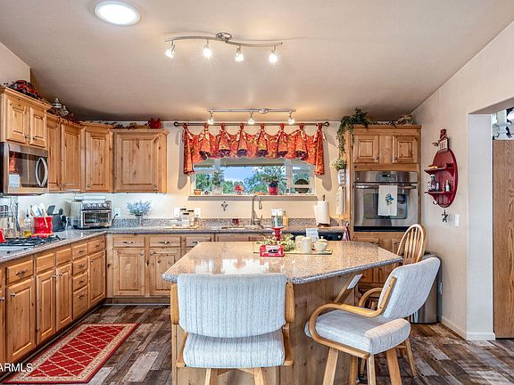 Beautiful home nestled in the Pinion Pines. Off grid, private well, fully fenced lot. Large 4 car garage with car port, also approx. 1200 sq ft shop with own solar system. RV pad, with septic and water tank. Updated solar system with 7 Lithium Ion batteries 24 panels (7x26 Volt 12 Amp for a total of 14,000 watts). Propane powered back up generator. The home is spacious with well appointed kitchen with center island, & walk in pantry. Dining nook. Living room with woodburning fireplace and swamp cooler. Family room/formal dining room. Laundry room with sink. Large master suite with dual sinks, separate tub and shower. Guest bathroom with dual sinks and tub/shower. Everything is very well done and immaculate. Located just off paved road approx. 25 minutes from Snowflake. Not to be missed!