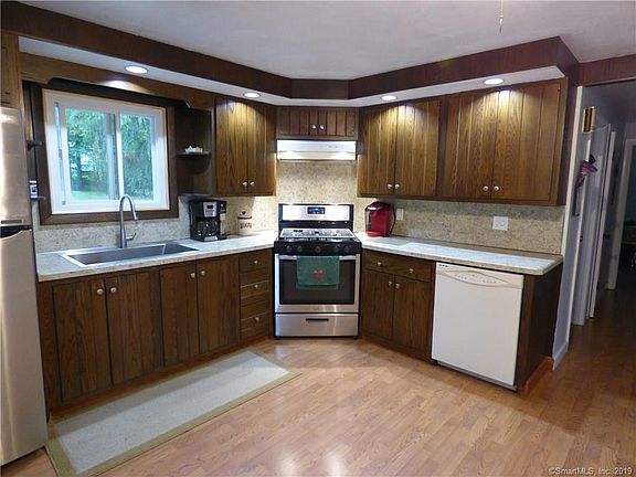 Located on one of Southington's finest country roads is this adorable 4 bedroom Cape. Entering through the front door is inviting. Also access the house through the 11 x 16 breezeway and relax a bit and enjoy the light filled space and private level back yard. Through the breezeway is the eat-in-kitchen complete with newer stainless steel appliances and brand new cabinet hardware. After dinner, relax in the spacious sun filled living room complete with hardwood flooring. 2 main level bedrooms are at the end of the hallway with hardwood flooring and plenty of closet space. A fully remodeled full bath completes this level. Upstairs includes 2 additional bedrooms, both large with built-ins and a spacious half bath in between. Many updates in this fine home include: NEW ROOF, NEW SIDING, NEW UPGRADED SEPTIC TANK( 1250, NEW INTERIOR DOORS WITH NEW HARDWARE, NEW HOT WATER HEATER AND MORE