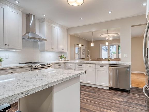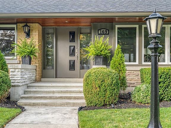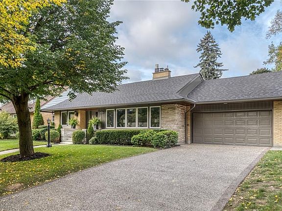 Great Investment Opportunity! it's an honour to feature this completely renovated large 3+2 bedroom Bungalow in sought-after mature neighbourhood, resting on one of the larger East Ave lots. This prestigious home shows even better in person, and it's all in the details! Updated with modern finishes, coupled with purposeful classic features. Step inside the bright and inviting foyer, with sights to the back of the home. Your eyes will be drawn to the 5 massive Becker windows (2020), that allow loads of natural light & fresh air to flood this space. Family room is highlighted by an open gas fireplace, nestled in a dark walnut mantel. Next up is the designer kitchen you have always dreamed of! Shimmering bright with granite countertops, two dine-in islands, maple lazy suzan, and brand new LG stainless steel appliances. Extending off the kitchen is a sit down formal dining room. The large master bedroom is at the back of the home, with plenty of windows, and spacious closets. Master en-suite bathroom has 2 sinks in a double wide vanity and a built-in frameless glass shower, tiled porcelain white and heated flooring. There are two additional bedrooms/ home offices and a polished main bathroom, styled to match the en-suite. This level also has a discrete laundry facility behind bifold doors, complete with stacked washer & dryer (2020), tub and shelving. Enjoy the stained wood covered patio and pool sized lot on your time off. The lower level is ideal for large families or in-laws with a separate entrance. Exposed dark walnut beams and matching feature fireplace in a brick mantel create a regal atmosphere. The lower level has 2 large bedrooms, 2nd kitchen with ample cabinetry, 2 piece bathroom, separate tiled shower, and a 2nd laundry facility. Insulated attic can be repurposed and is accessed from the 2 car garage. All items owned; high efficiency furnace and AC, roof 2019, water softener 2017, water heater 2020, central vac. This home truly has it all and shows like new!