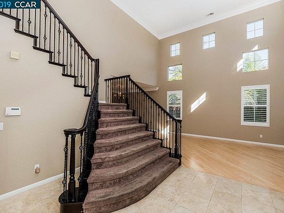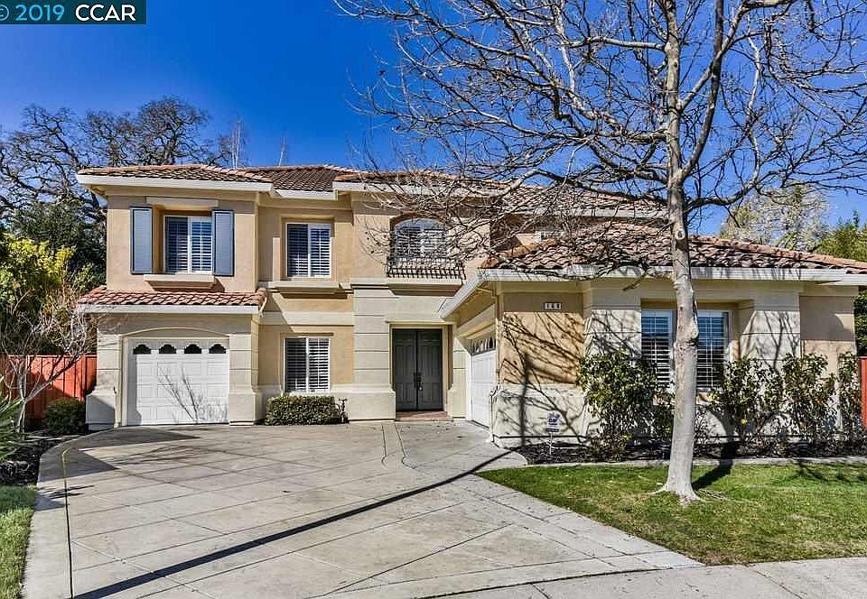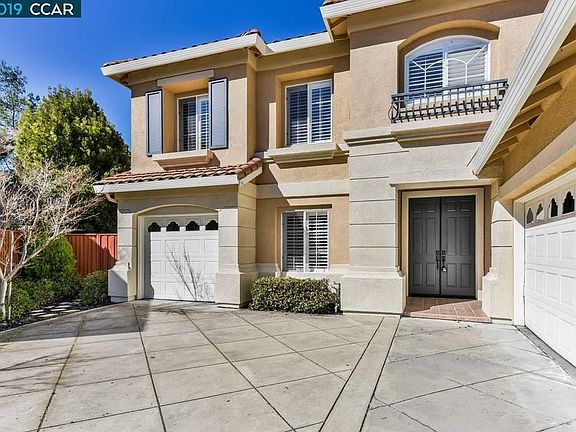 Mediterranean style house with 2-story ceilings and spacious living areas. Located at the end of a cul-de-sac with lots of potential. Hardwood floors, stone tile flooring, wrought iron ballusters, and crown moldings. Features a bedroom/den and a full bathroom on the street level. The master suite has 2 walk-in closets and dual vanities plus a soaking tub. Must see!
