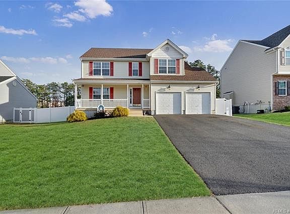 Impeccably maintained 4-bedroom, 2.5 bath colonial situated in the desirable Whispering Hills community of Barnegat! From the moment you arrive, you are greeted by the charming front porch! The formal dining room makes entertaining easy! The eat-in kitchen has breakfast bar seating. The master suite has a walk-in closet and full bath attached. The master bath has dual sinks and a stall shower. The second floor has three additional spacious bedrooms and a second full bath. The full finished basement is the perfect hang out area! With high ceilings and plenty of additional storage, this area is sure to impress! Serene and private backyard. Your summer guests will never want to leave with the expansive back yard, complete with a huge Trex deck and vinyl fencing! The yard has underground sprinklers connected to a well system to keep your water bill low in the summer months!