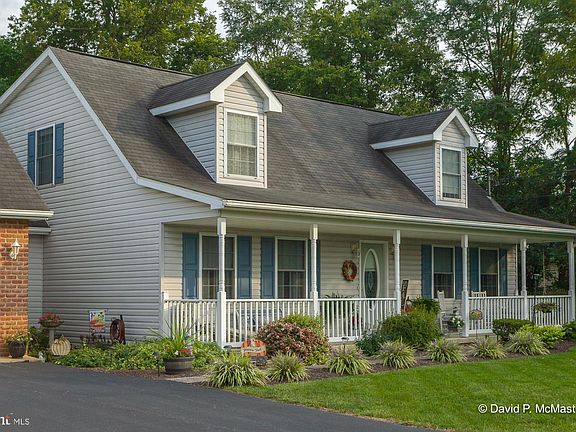 One owner home shows pride in ownership! Custom built Cape Cod offering four bedrooms (option of one on the main level) and three full bathrooms with updated kitchen, LVP flooring & freshly painted. Main level features formal living room, sitting w/ detailed stone fireplace open to equipped kitchen w/ island and table space, bedroom or office , full bathroom, and laundry/mud room leading to the two car garage. Upper level features spacious master bedrooms suite w/ two closets & master bath, two additional bedrooms share entrance to the jack-n-jill bathroom. Full unfinished basement set-up w/ work area and shelving. Escape to the outside park like oasis complete with a rear deck, patio area, covered front porch set in the privacy of the tree lined cul-de-sac. Unique site offers two lots for a total of 0.56 acres in a convenient location just minutes from I-81 Tabler Station exit.