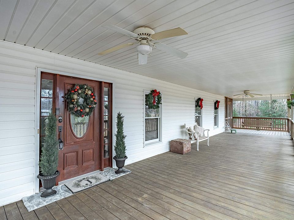 Tucked away on nearly 5 peaceful acres, this charming 3-bedroom, 3-bath home feels like your own country hideaway! NEW ROOF IN 2024! A welcoming wrap-around porch invites rocking chairs, morning coffee, and slow evenings listening to the sounds of nature. Beyond the gated yard, you’ll find tons of driveway parking, perfect for gatherings, guests, trailers, or extra vehicles.Inside you will find warm and inviting spaces with rustic charm and solid oak kitchen cabinets and no carpet through out the home. Enjoy brand-new high grade LVP flooring in all the bedrooms for a fresh, modern touch that still feels perfectly cozy.The primary suite is its own quiet escape, complete with a private screened porch making a peaceful place to unwind, watch the breeze move through the trees, or cozy up with your favorite book. When the sun is shining, head outside to your in-ground salt water pool, surrounded by open skies and room to relax, play, and soak up the serenity. There’s plenty of space for storage and hobbies with a carport and shed, and the land offers endless possibilities—gardens, animals, or simply space to roam and enjoy.This is the perfect place to retire with 36 inch doorways and a slow pace scenery. Country living never felt so comforting. Welcome home to your cozy, rustic retreat. Termite bond in place! Disclaimer: CMLS has not reviewed and, therefore, does not endorse vendors who may appear in listings.