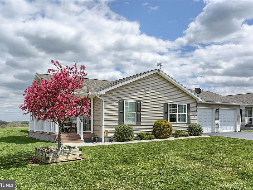 This beautiful Ranch home in Creek View Community (55+ Community )is LIKE NEW! With a large floor plan offering over 1,600 square feet of finished space, 3 bedrooms, 2 full baths and a 2 car garage! You'll LOVE the natural light and LVP flooring, newer carpet and open floorplan that this home has. A beautiful kitchen with an abundance of cabinets and an overhang that is great for bar stool seating. The eat-in area of the kitchen is quite large and also has a rear patio slider to sit and enjoy your morning coffee or quiet evenings. The living room is large and features newer carpet too. The owner's bedroom can fit a king size bed and also has a walkin closet and private owner's bath with a dual vanity and walk-in shower. The guest bath is a tub/shower combo. The 2 additional bedrooms each are large and have individual closets. Main floor laundry as well. The two car garage is oversized. A corner lot with beautiful landscaping surrounds the home. This home has forced air, central air/propane heat and back up electric wall inserts. Lot rent includes Water, Sewer and Trash! Call today to learn more!