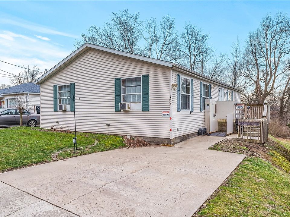 Welcome to your future home sweet home! This one-story, 3-bedroom, 2-bath home offers a blend of comfort and functionality. Step inside to this warm and welcoming interior complete with an open concept living and dining area with a beautiful wood burning fireplace. The kitchen is equipped with a refrigerator, stove, dishwasher, island, and ample cabinet space for all your needs. Off of the kitchen area is the convenient 1st floor laundry room. The primary bedroom has updated flooring, walk-in closet, and an ensuite bathroom. The large full size basement is an open canvas where you can create your own space with many possibilities.