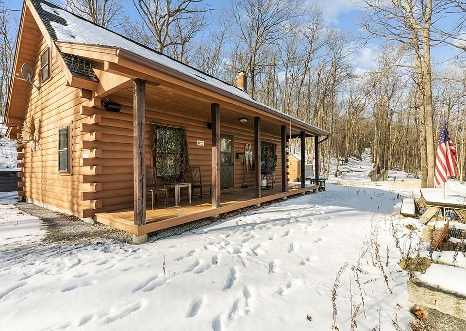 Welcome to your very own secluded and picture-perfect fully furnished Log Cabin getaway boasting breathtaking views, trails for walking, running, & hiking and other outdoor recreational activities such as snowmobiling, ATV riding, archery and marksmanship. Nestled atop a hill of 43+ acres and escape to your private hideaway leaving behind the hustle and bustle as the rest of the world melts away. This stunning Log Home features open floor plan living with cathedrals, wood floors throughout, cozy wood stove, roomy 1st floor bedroom and master bedroom/office area/loft space. The full basement offers ample storage space and laundry. Separate 1024 sf sizable 2-bay garage with unfinished Loft, Great for construction equipment & small office! Also included are 3 more lots offering an additional 20 acres. Endless opportunities await the new owner! Schedule your private showing today! Also listed in RI & CT MLS.