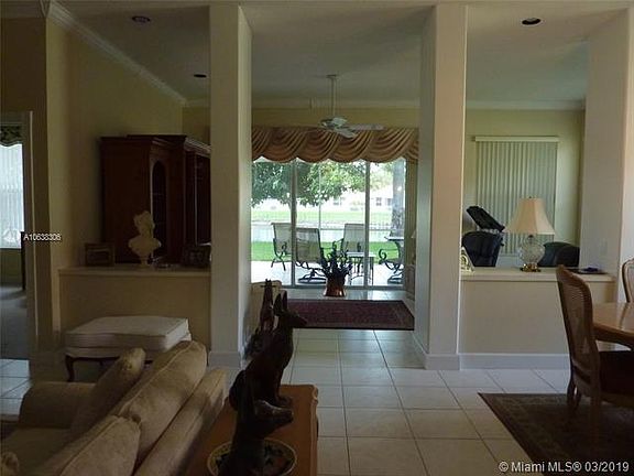 Lake view is beautiful as you enter the foyer. This immaculate 3/2 home's roof with skylights has been replaced, spacious side and back yards, a patio with electronic awning, extra parking, crown molding, large back screened porch. accordian storm shutters, and so much more. This great room is an open floor plan. Close to parks, beaches, golf, and many entertainment opportunities. Low HOA fees include cable, internet, and front yard maintenance.