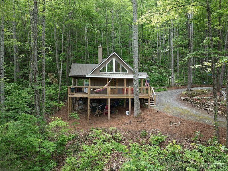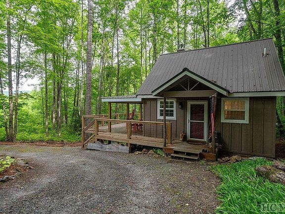 The serene sound of a waterfall is the just the start to why 169 Hanging Rock Road is the perfect mountain retreat. With almost four and a half acres of privacy, this quintessential cabin in the woods is all you need to beat the heat and escape to the mountains this summer. As you come up the gravel driveway, you reach a mostly flat yard and circular driveway leading you to the cabin. You are greeted by the large porch and long range ridge view. As you enter the cabin, the charming kitchen with cast iron farmhouse sink is the heart of the home. The full bathroom with tub connects to the laundry room and storage closet. The wood burning fireplace is the anchor of the living room that leads out to the grilling porch. Up the stairs is the primary bedroom flooded with natural light. Outside, a trail leads you to a picturesque waterfall and stream that you can hear from all points of the property. Make this quaint cottage home or take advantage of the acreage to build your dream home.
