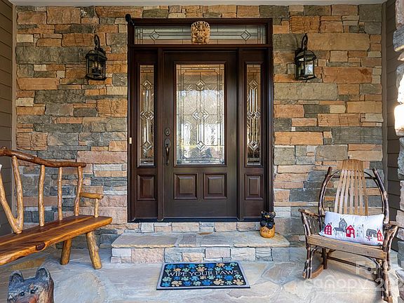 Absolutely Stunning! This exceptional home offers the perfect blend of elegance, comfort and luxury mountain living. Located in Kenmure-a prestigious gated golf course community and situated on 1.5 private acres w/ mountain views. This home features extensive interior and exterior upgrades. The main level boasts spacious open floor plan, great room with vaulted ceiling, floor to ceiling stone fireplace, wall of windows, chef's kitchen with newer high-end appliances, granite tops, breakfast bar and pantry, luxurious spa-like master suite with tray ceiling, dual walk-in closets, unbelievable wet spa, heated tile floors and floating double vanity, gorgeous sunroom, dining room with tray ceiling, laundry with sink and powder bath. Lower level features family room with fireplace, 2 en-suite bedrooms, flex space and plenty of storage. Relax at the end of the day on the multi-level deck, screened or front porch. 2 car garage plus golf cart garage. Luxury mountain living at its finest!