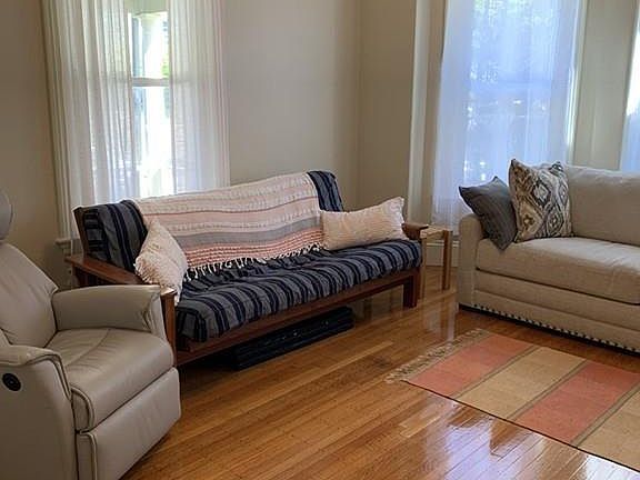 BRING OFFERS ! Spectacular renovation of Classic Victorian. Old world charm and artistry is blended with with modern conveniences and amenities. Period details: high ceilings,original pocket doors, stained glass windows, wainscotting, wood trim and hardwood floors throughout. Spacious and sunny open floor plan updated eat in kitchen with island, marble counter tops, new cabinets, top of the line appliances, bay windows and large picture window. En suite Master Bath, walk in closet and laundry. Working fire places in 2nd bedroom and living room. New patio and landscaping. Exterior and interior newly painted. Roof and gutters newly repaired. Front porch newly stained.Set on a quiet cul de sac,169 Hunnewell is a warm and inviting home, perfect for family and entertaining. Easy access to MA Pike, parks, shopping, schools, medical centers, houses of worship. Basement storage, 2 Parking spaces. Potential for new private deck construction ask agent for details.