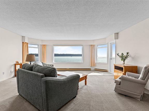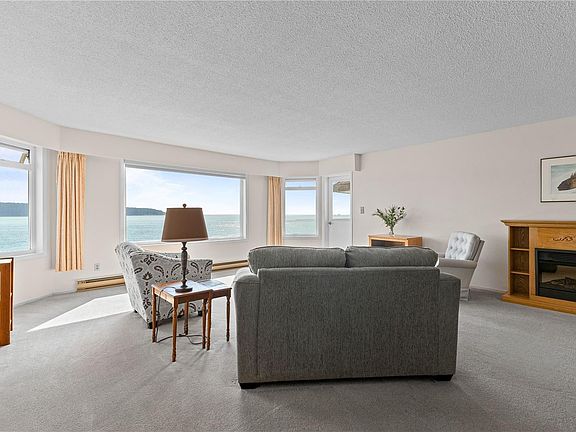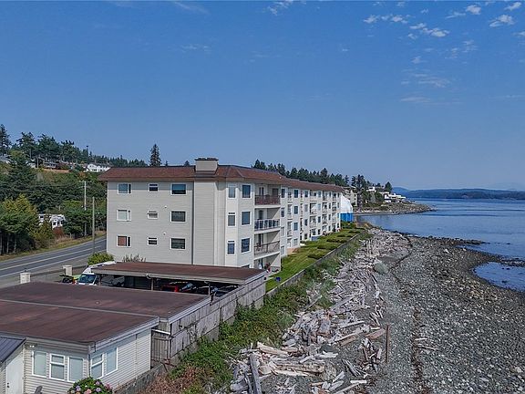 Discover top-floor oceanfront living at Ocean Shores! This bright condo offers breathtaking views of Discovery Passage, where you can watch sunrises, passing marine life, and coastal scenery right from your windows. The spacious layout features a functional kitchen, large living area, and sliding doors from both bedrooms leading to the expansive balcony. The primary suite includes a walk-in closet and full ensuite with tub and shower, while a second bathroom with shower is conveniently located near the guest bedroom. Skylights in the entry and ensuite add natural light, and in-suite laundry plus ample storage make life easy. Residents enjoy incredible amenities including a beachfront gathering house, oceanfront firepit and BBQ area, and a workshop. Embrace a lifestyle where the ocean is at your doorstep!