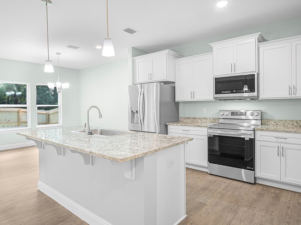 BRAND NEW HOME! Construction is complete, and it is ready for a homeowner! You will love this floorplan with a large foyer that flows into a beautiful open living space with lots of natural light, vinyl plank flooring, and large kitchen with an island, granite countertops, white cabinets and more! The upstairs features 4 bedrooms including the exceptionally large master suite with a beautiful bathroom and enormous walk-in closet. The guest bedrooms are great as well with the 4th room being very large and could be utilized as a play/game room. The separate laundry room is also upstairs! So no toting laundry all over the house! The backyard is decent with a beautiful shade tree. This is a great family, starter or military home with lots of storage and an easy and incredible layout!