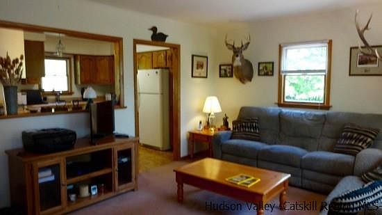 Easy as pie ! This cedar sided ranch house is easy to own . Main floor offers a large kitchen ,living room with cozy woodstove ,three bedrooms and a full bath . Large wraparound deck Full poured concrete basement with two finished rooms and a full bath , workshop and garage . Many recent updates include newer roof ,new windows and new heating system . Beautiful stonework and a glorious 8 1/2 acre parcel . Convenient to both Margaretville and Andes.