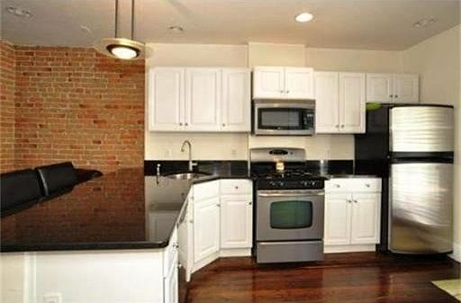 South Boston sought after East Side K Street renovated 2 bedroom 1.5 bath condo for rent! Great layout with granite/stainless kitchen, gas cooking and breakfast bar open to living room with exposed brick and espresso stained hardwood floors on the first floor. French doors open off kitchen to private deck. Full bath with walk in tiled shower. Downstairs has newer carpet, good storage space, 1/2 bath and washer/dryer. Central air, awesome location! Available September 1. Call/text Meredith at 513.638.8223 to set up a showing!First month's rent, security deposit, and realtor fee required.