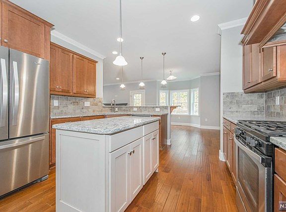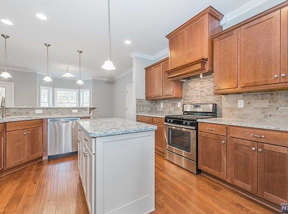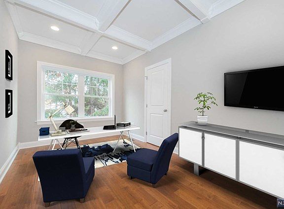 Welcome to this bright spacious energy efficient, newer constructed, home in the sought after town of Oradell. This beautifully designed home features Hrdwd flrs, 9ft ceilings, recessed lighting and moldings throughout. 1st floor highlights a LR/office with coffer ed ceilings, gorgeous large DR, Gourmet KIT/Granite counter-tops/ stainless steel appliances and contrast island. A spacious Dining area flows into the Family room where you can relax and enjoy the gas remote fireplace. Back door opens to a large paver patio and beautiful private backyard. The 2nd floor boasts MSTR BR suite with tray ceiling, twin walk- in closets, walk in spa like shower and double vanity. 3 more Bedrooms with large closets, full bath with double vanity, large storage walk in closet and laundry room. Beautifully finished basement with 9ft ceilings, 1/2 bath and tons of storage.3 zone heating and AC.