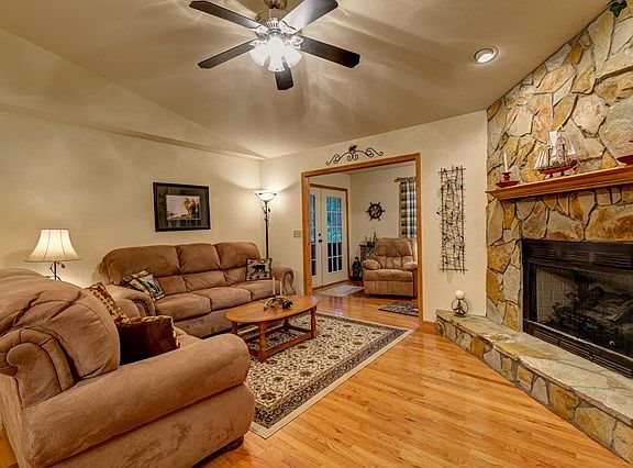 Indoors and Outyour mountain home here is perfect! Open wraparound deck, screened back porch, and lower level deck provides you and your guests multiple places to savor privacy and tranquility. At the end of the winding drive, find carefully manicured garden beds, neat landscaping, and a perfect cabin with rustic exterior. Inside, hardwood floors combine the open plan great room with stone fireplace, kitchen with shining white appliances, and bonus den. Main floor master suite with walk-in closet and ensuite bath plus guest bedroom and bath for cozy accommodations of your family and friends. Move-in ready, charming, and sweet. See it now!