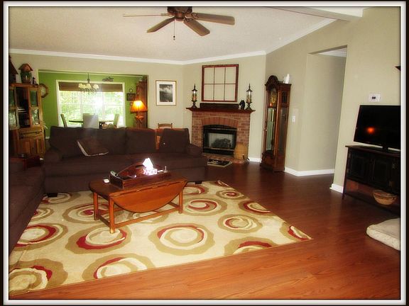 Private little hide away on 5 beautiful acres. Built in 2002, this modular home offers a split bedroom plan with 4 bedrooms, each with big closets. The foyer is large with a wide case opening into the spacious living room with masonry corner gas fireplace & ceiling fan. The living room adjoins a large dining area with sliders onto a 16x16 deck. The country kitchen offers several beautiful glass paned cabinets, tall breakfast bar, large pantry, tile backsplash and loads of cabinets & counter workspace!