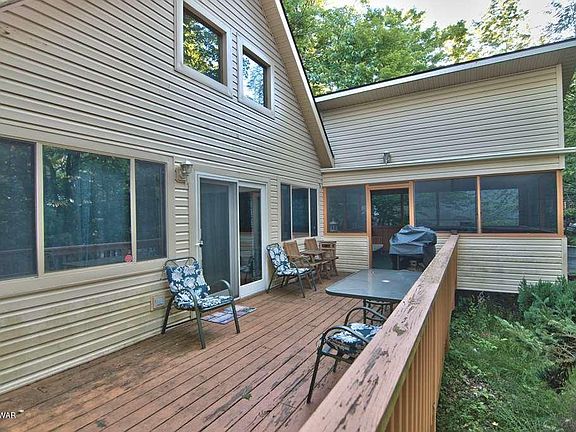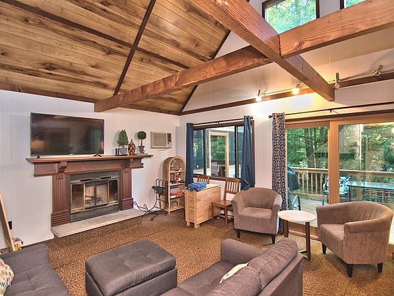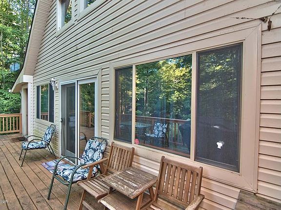 Located in The Northern Poconos, just over two hours from the NYC and Philadelphia Areas. This amenity rich community has a lot to offer. This chalet home is within walking distance to the Marina and Park at Roamingwood Lake. It has vinyl siding, an awesome screened in porch and deck. There's 4 bedrooms, 2 bathrooms, cathedral ceilings with wooden beams, an open floor plan, a fireplace, a side entry porch/mudroom. The amenities include lakes, beaches, pools, clubhouse with restaurant and pub, golf course, ski hill, tennis, indoor recreation complex with tennis/fitness center/arcade and more, basketball courts & more