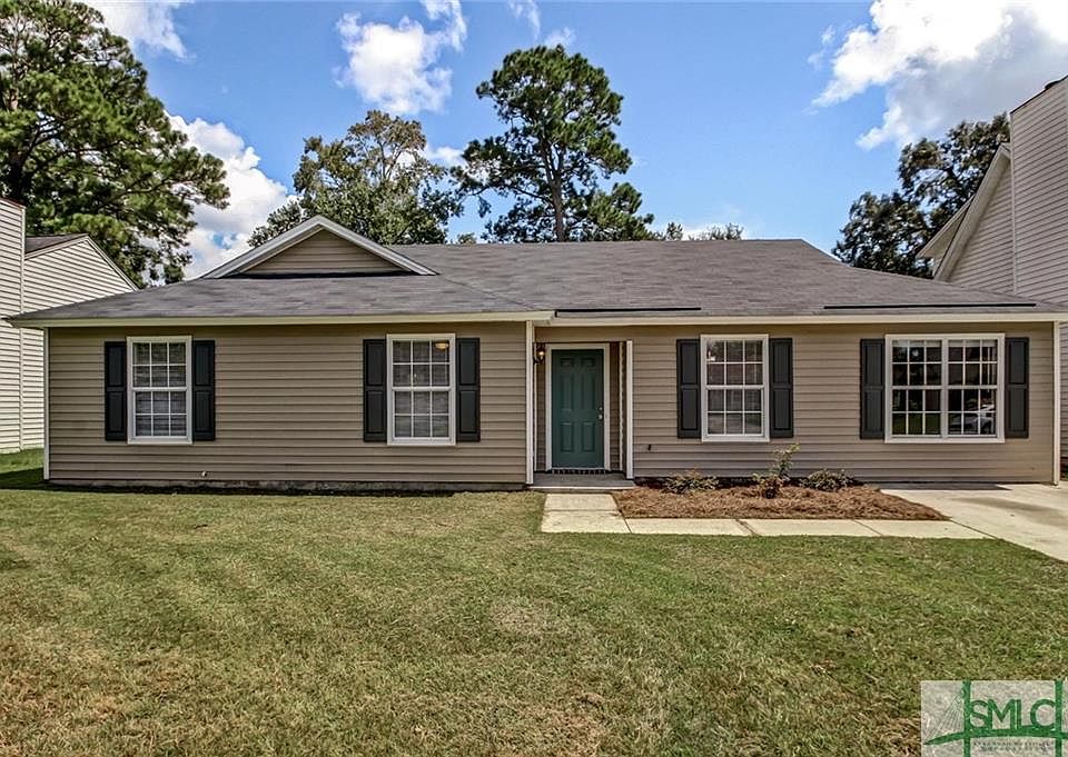 Welcome home to this charming residence in a friendly community. Radiating with curb appeal, this home boasts a designer paint scheme and freshly manicured lawn. Upon entering, delight in rich wood laminate flooring, vaulted ceilings, modern fixtures, and an open concept floor plan. The living room features a classic brick fireplace, perfect for cozying up to on cool fall evenings. Enjoy a home cooked meal in the chef's kitchen showcasing stunning countertops, tasteful hardware, and stainless steel appliances. Two of the bedrooms are lined with plush carpeting for comfort and are luminous with natural light, while ample space allows for great circulation. If fresh air is what you seek, enjoy activities in the spacious and private yard or delight in a glass of sparkling on the patio. Sure to be admired, we recommend requesting a viewing today!
