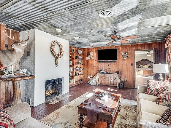 OUTDOORSMAN PRIVATE RETREAT ON 14 BEAUTIFUL ACRES! Huge shop, separate man cave, horse barn, & in-ground pool w/ slide! Bring your horses/livestock!! Open concept living/dining w/ brick floors & fireplace! Large kitchen w/gorgeous granite, a large island & stainless steel appliances! HUGE master bedroom w/a remodeled master bath featuring a unique stone sink. Secondary bedrooms are HUGE! Covered patio connected to pool area that is perfect for entertaining! Land features a private pond perfect for duck hunting/fishing! This home features tin ceilings, wood floors, a bar, and too many updates to list! Five acres of the land is pasture!