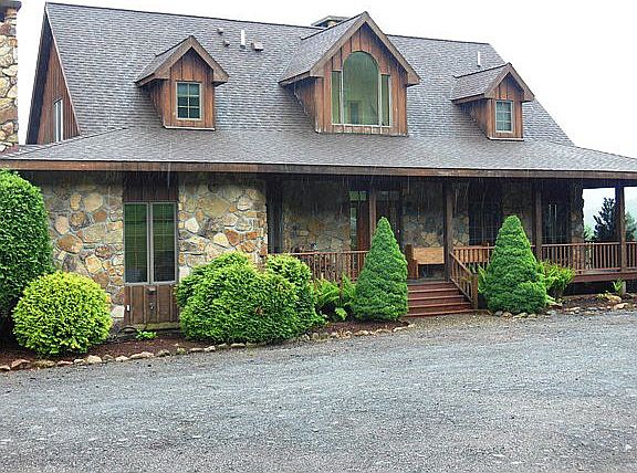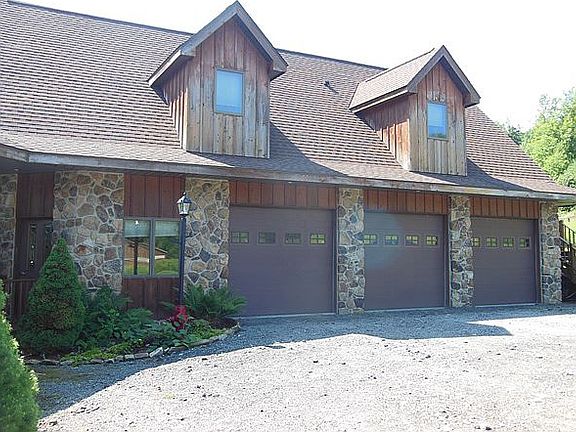 Main house has 2 bedroom and 1 bathroom on top floor; master bathroom, 2 bathrooms, kitchen, living room and dining room on main floor; and basement Has Solarium, Theater Room, 3/4 Bathroom, climate-controlled Wine Room, Recreation Room with pool table, Full Bedroom, Laundry Room & Utility Room. Detached 2 BR/Bath guest apartment with kitchen and living room above 3-car garage. Mud room in garage with bathroom. Porches & Deck on main house and guest apartment. Hot tub on back deck. Cherry and Oak Hardwood Floors. Granite Kitchen Island. Cathedral Ceiling and Beautiful Views.