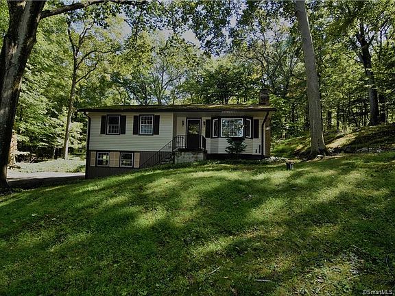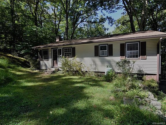 Cute Ranch in private 2 acre wooded setting on the Bethel line. 3 Bedrooms, 1 full bath, hardwood floors in bedrooms and living room. huge eat in kitchen, lower level family room, huge laundry room can be possible future bath, walk out to driveway. 8 year old roof, 12 year old siding, detached 2 car garage with loft above House being SOLD "AS IS" and priced for it Not a distressed sale Convenient location on Bethel Line minute to Big Y, restaurants, shopping, Gas and exit 9