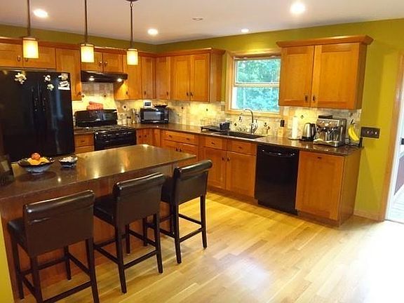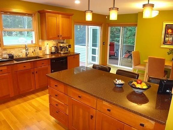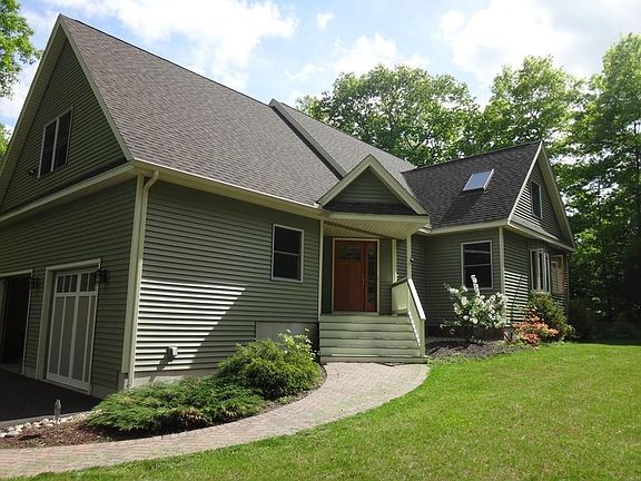 This is a rare find for anyone looking for a peaceful setting, surrounded by nature, with easy access to city amenities and schools of Amherst and Northampton. Woods, walking trails and a nearby Knight's Pond encourage outdoors activities, like walking and jogging. All that 15 minutes from downtown Amherst and UMass. This better than new home boasts a large private backyard with a bonus, secret woods trail entrance. The beautiful yard is meticulously maintained, with some fruit trees and a vegetable garden. The home features an open, modern layout and some high tech, high end, energy efficient solutions like radiant heat, and small tube AC. Remodeled in 2014, the home features a beautiful cherry kitchen, gorgeous contemporary bathrooms, and hardwood floors throughout. Jacuzzi/whirlpool tub, sauna, and a screened porch add to the appeal. Master suite on the first floor is very convenient, and allows for one-floor living. "Sellers to entertain offer in the range of $400,000-$425,000."