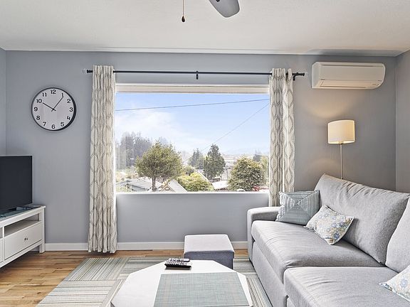 Charming, turn-key home with a stunning view. Relax in the living room while watching the sunrise over the city and mountains. Upon entering, you're greeted by a coastal ambience. The naturally refinished hardwood floors blend perfectly with the colors and tones. A thorough renovation took place here in the last 2 years and it shows. From the new roof to the refinished floors and everything in between. The two bedrooms are a nice size, and the primary is big enough for a king size bed. This home also boasts a large backyard with tons of privacy and a covered patio to enjoy time outside even on rainy days. Conveniently located less than half of a mile from Mingus Park and the vibrant downtown. UPDATES INCLUDE: New roof, gutters, and fascia boards. A complete bathroom remodel with tile surround, a custom vanity and linen closet, updated plumbing and electrical, new vinyl sliding glass door, new side entry exterior door, updated kitchen appliances and tile backsplash, energy efficient heat pump with 2 mini-splits (one in the primary bedroom), refinished hardwood floors, new baseboards, new light fixtures, new water heater, and new paint throughout. Laundry is in the unfinished basement and this space adds 494 sq ft. of additional storage. Space for laundry to be relocated upstairs.