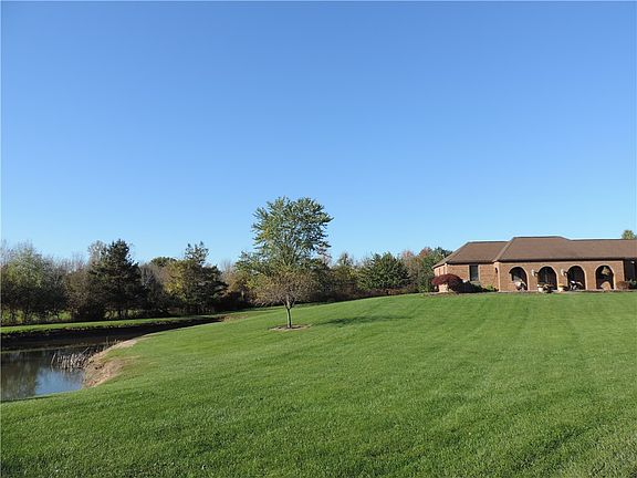 Brick Ranch on 7.8 Acres, Set Back 400’ off North Greece Rd, 281’ x 1140 Lot w/Pond & Space for Everything! Cathedral Ceil Great Rm, Gas Stackstone FPLC, Recessed Lights, Skylites, Sliding Glass Dr. to Patio & Open to Kit w/Cath Ceil, White Cabinets, XL Island w/Brkfst Bar, White/Grey Granite Cntrs,Travertine/Glass Tile Backsplash, Under Cabinet Lighting & Walnut Engineered Hrdwd Flrs into Din Area–Sharp! 2nd Set Sliding Glass Drs to Raised 22 x 30 Concrete Patio, Front Living Rm, Covered Front Porch, 3 BD, 2.5 BA, All w/Updated Flring, Mst BD, W/I Closet, Mst Bth Jacuzzi Style Tub/Shower, Cool–1st Flr Laun/Mud Rm & Powder Rm, Big Tall 13-Course Fin Bsmt, Luxury Vinyl Flrs, Carpeted Rm, Walk-Up/Out Steps to Behind Patio, Hi-Eff Furn/AC, "Tear Off" Roof 2006, Big Blacktop Space-Come see!