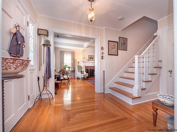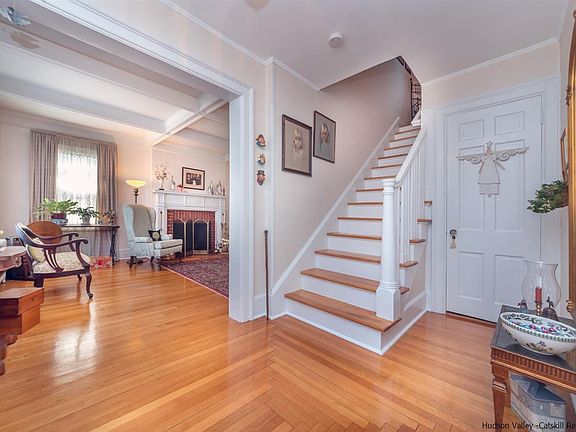 FINALLY...The wait is over. This 2 story Colonial in Kingston's much sought after Roosevelt Park is on the market. Minutes from Historic Uptown and NYS Thruway. This home offers- Large living room with fireplace, formal dining room, eat in kitchen, laundry/mudroom and enclosed sun porch. On 2nd floor 3 large bedrooms with porch off Master Bedroom Suite. A 2 car detached garage at end of driveway. This home offers original hardwood floors, coffered ceilings, crown molding and much more....... Don't miss the opportunity to call this house your home.